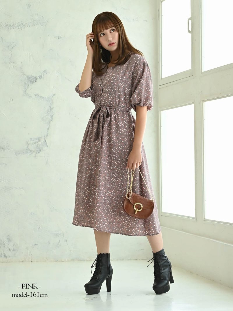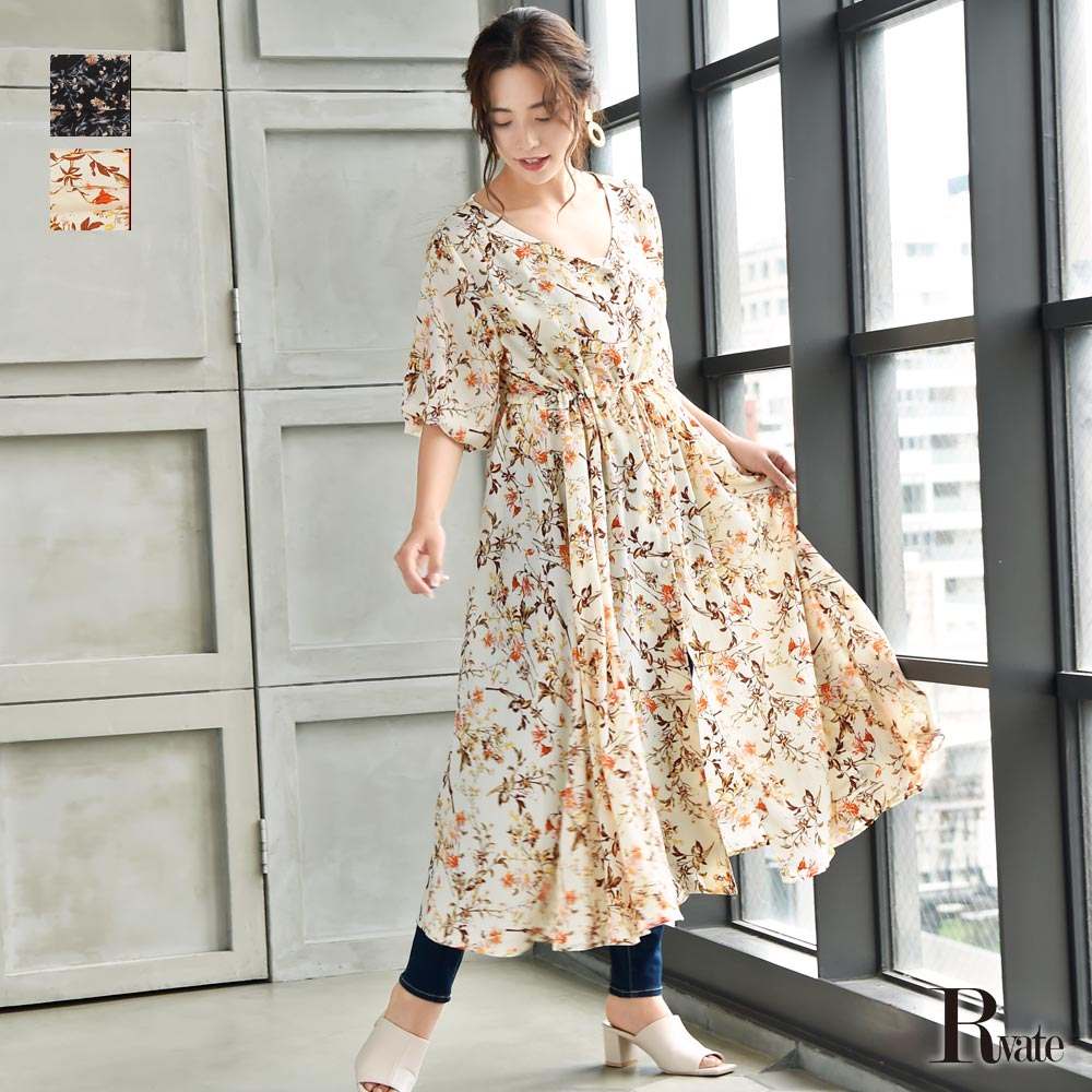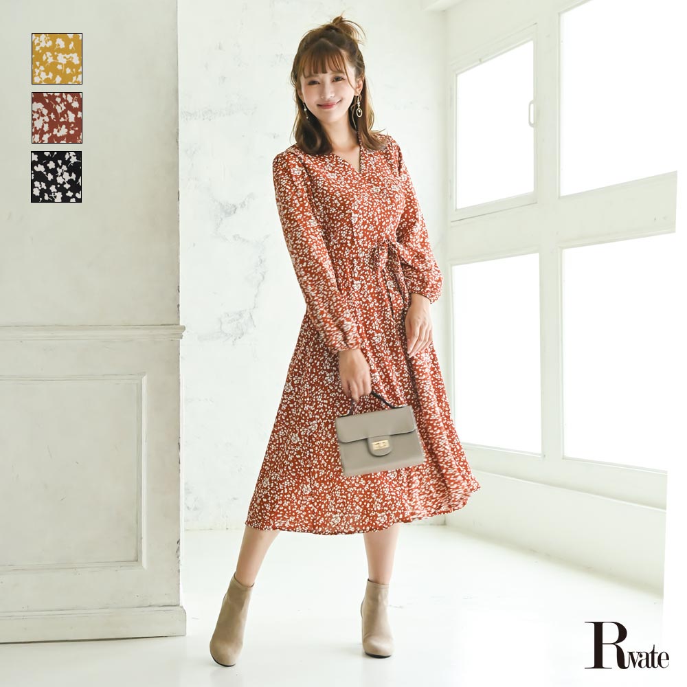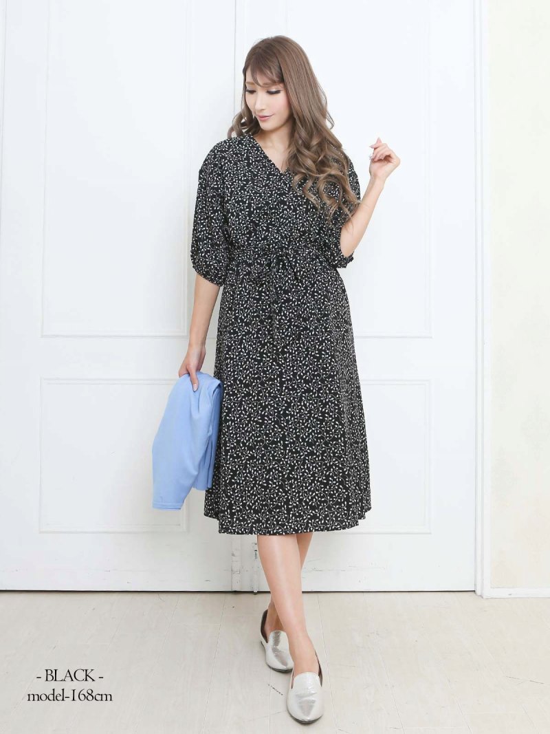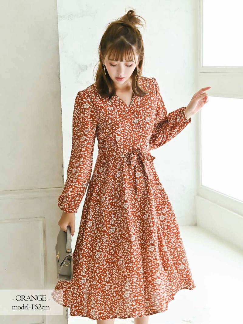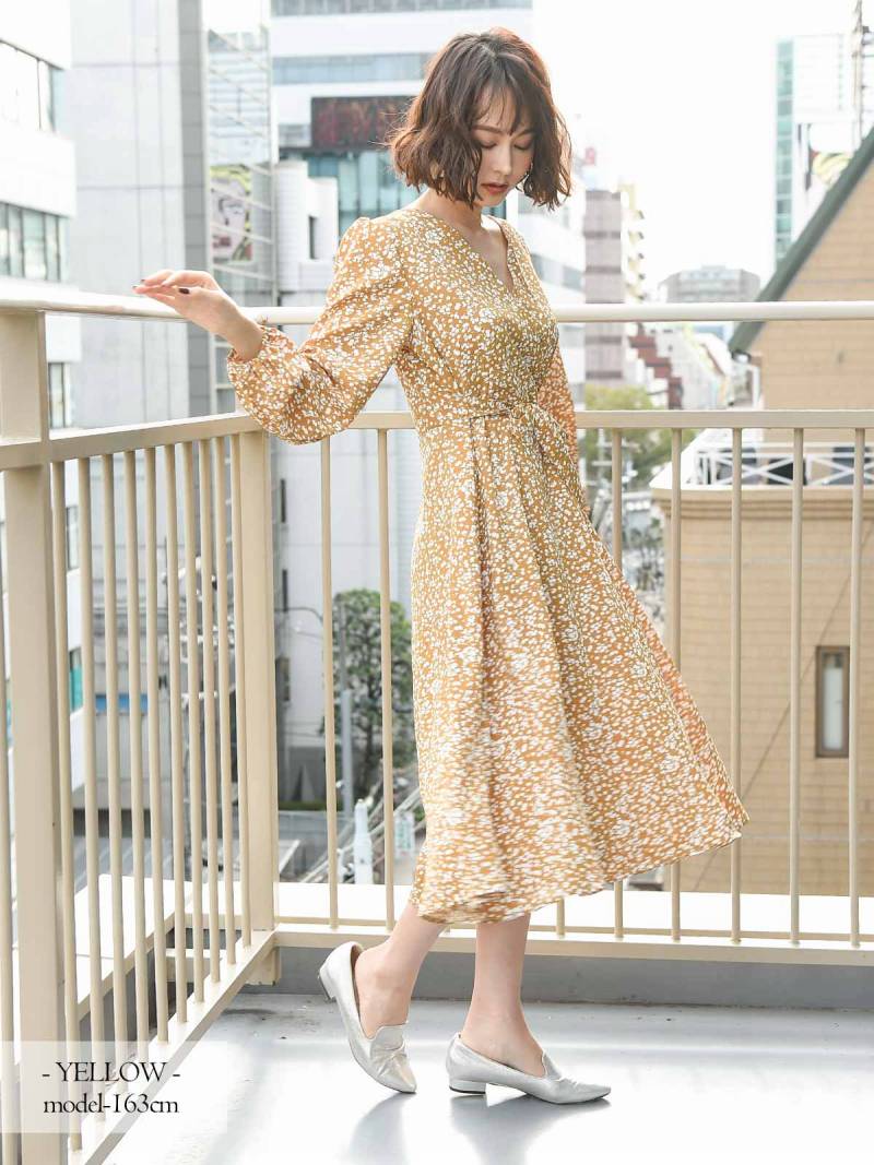 [9/4~TIMESALE]キャバ ワンピース パーティードレス レトロ 小花柄 ミモレ丈 カシュクール セクシー エロ