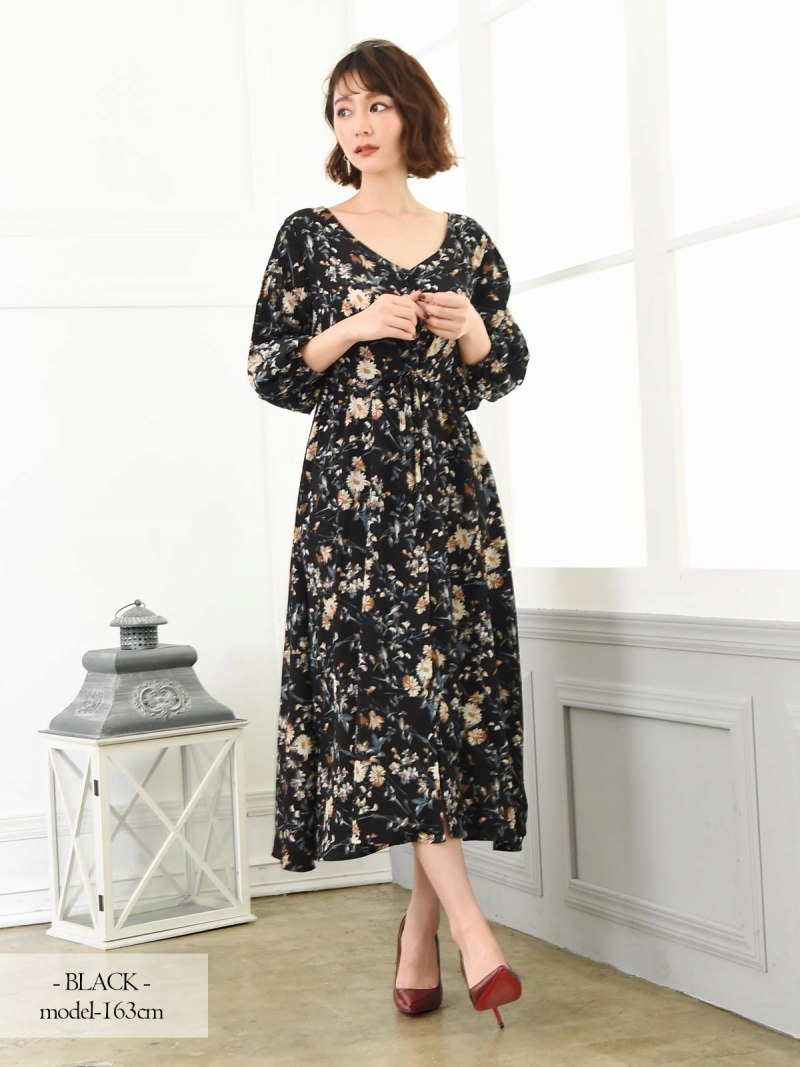 [9/4~TIMESALE]キャバ クラ キャバワンピース パーティードレス ボタニカル 小花柄 ミモレ丈 ロング セクシー エロ
