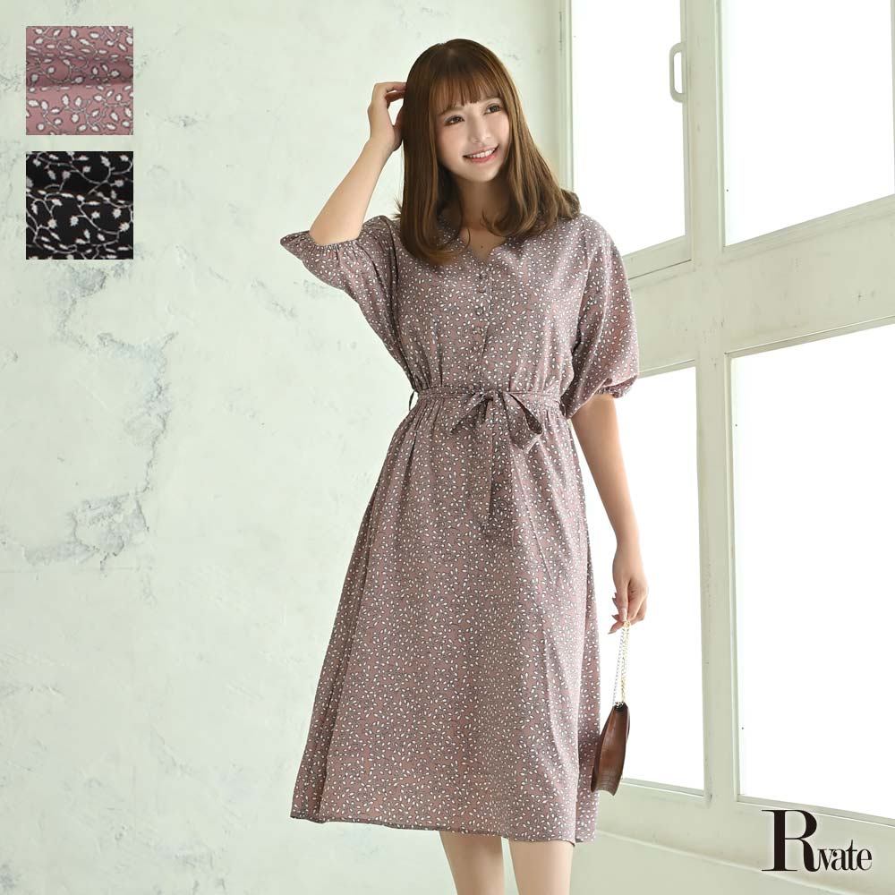 送料無料 ワンピース ドレス レディース キャバドレス パーティードレス 半袖 フレンチスリーブ ミモレ丈 Vネック 膝丈 花柄 蝶 セクシー 美脚効果 大人女子