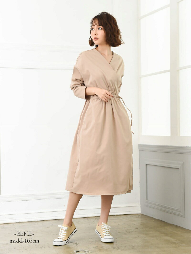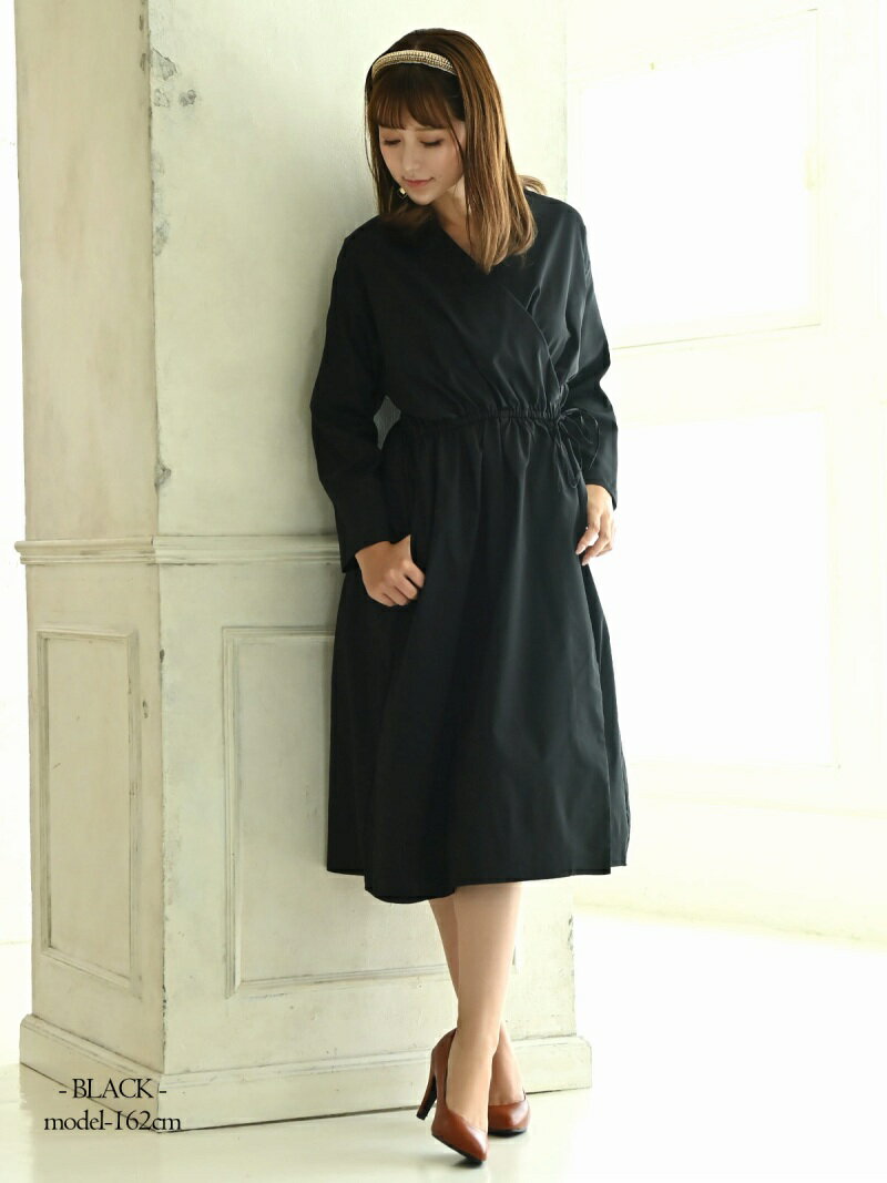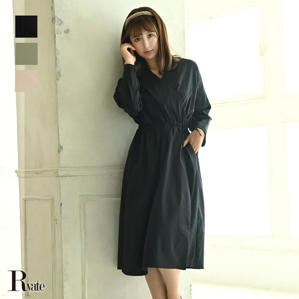 [9/4~TIMESALE]キャバ クラ キャバワンピース パーティードレス 無地 カシュクール ミモレ丈 シンプル セクシー エロ
