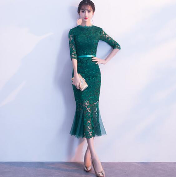 クーポン利用不可、返品交換不可 グリーン2XLダークグレーXS 返品交換不可 【正規品】 パーティードレス 大きいサイズ 小さいサイズ ミディアムドレス マーメイド イブニングドレス ミモレ丈 忘年会 結婚式 フォーマル レース マーメイドライン 膝丈 カラードレス