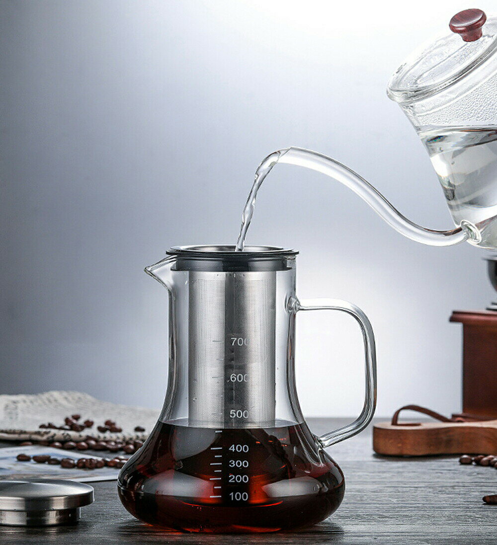 送料無料 IwaiLoft ウォータードリッパー 耐熱ガラス コールドブリュー アイス コーヒージャグ 水出し 上質SUSステンレスフィルターインコーヒーボトル ガラスピッチャー 耐熱ガラスポット ハンディーピッチャー 冷水筒